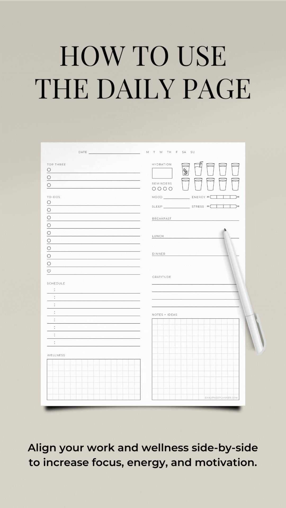 The Daily Page is a holistic planning page that was created using years of user feedback and science-backed design. It is different from other paper planning tools because it: