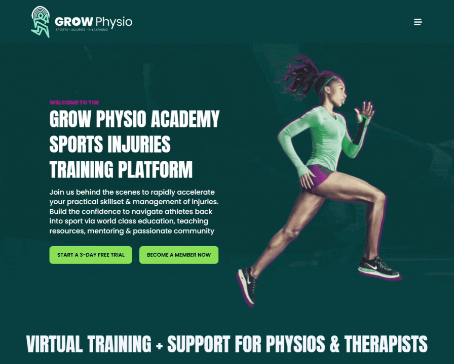 I like using a bit of animation to help site's stand out. My client, Steve, is a physiotherapist based in the UK. He provides continuing education and online support to other physios through the Grow Physio Academy. When updating his website, we added a background animation to the hero section at the top of his homepage just to add some subtle movement and interest: