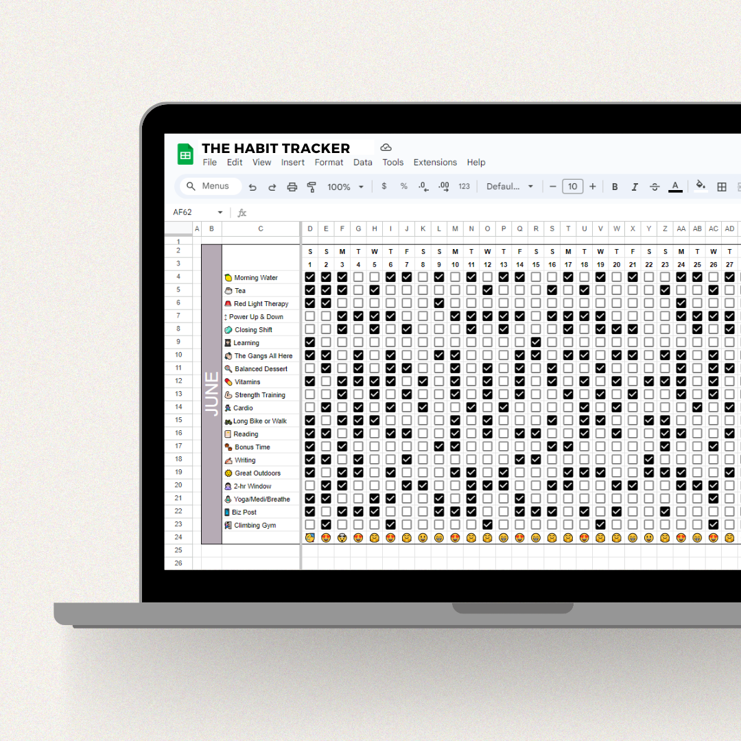 The more habits you complete in a day, the more the emojis and colors will change. Fill out the "settings" tab and the monthly views auto-populate. The ultimate tool for developing new habits -- it is always dated for 12 months from the month of purchase, so jump in any time throughout the year!